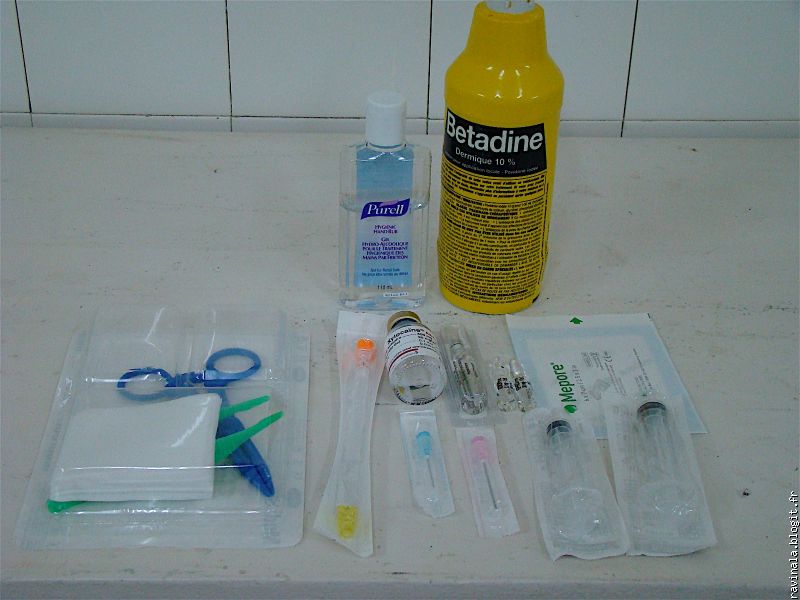 - Don 2010 : sets pansements sutures / lunettes à oxygène / masques à aérosol / pansements / fils sutures / seringues / aiguilles / cathlons/ aiguilles à rachi / stylos et aiguilles à glycémie / attelles (bras et jambe) / antalgiques /anesthésiques locaux / drogues d'anesthésie générale / adrénaline / atropine / pansements intestinaux / solutions hydro alcooliques / bétadine dermique